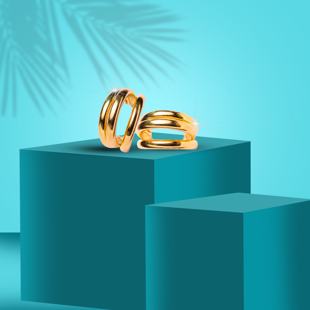 Triple Curved Hoop Earrings Elevate your jewelry collection with these sophisticated triple curved hoop earrings, expertly crafted to deliver contemporary elegance. The distinctive triple-arc design creates dimensional movement while maintaining refined simplicity, making them versatile enough for both everyday wear and special occasions. Precision-engineered curves ensure comfortable fit and lasting durability. These statement pieces showcase superior craftsmanship, offering a modern alternative to traditional hoops that complements various face shapes and personal styles.